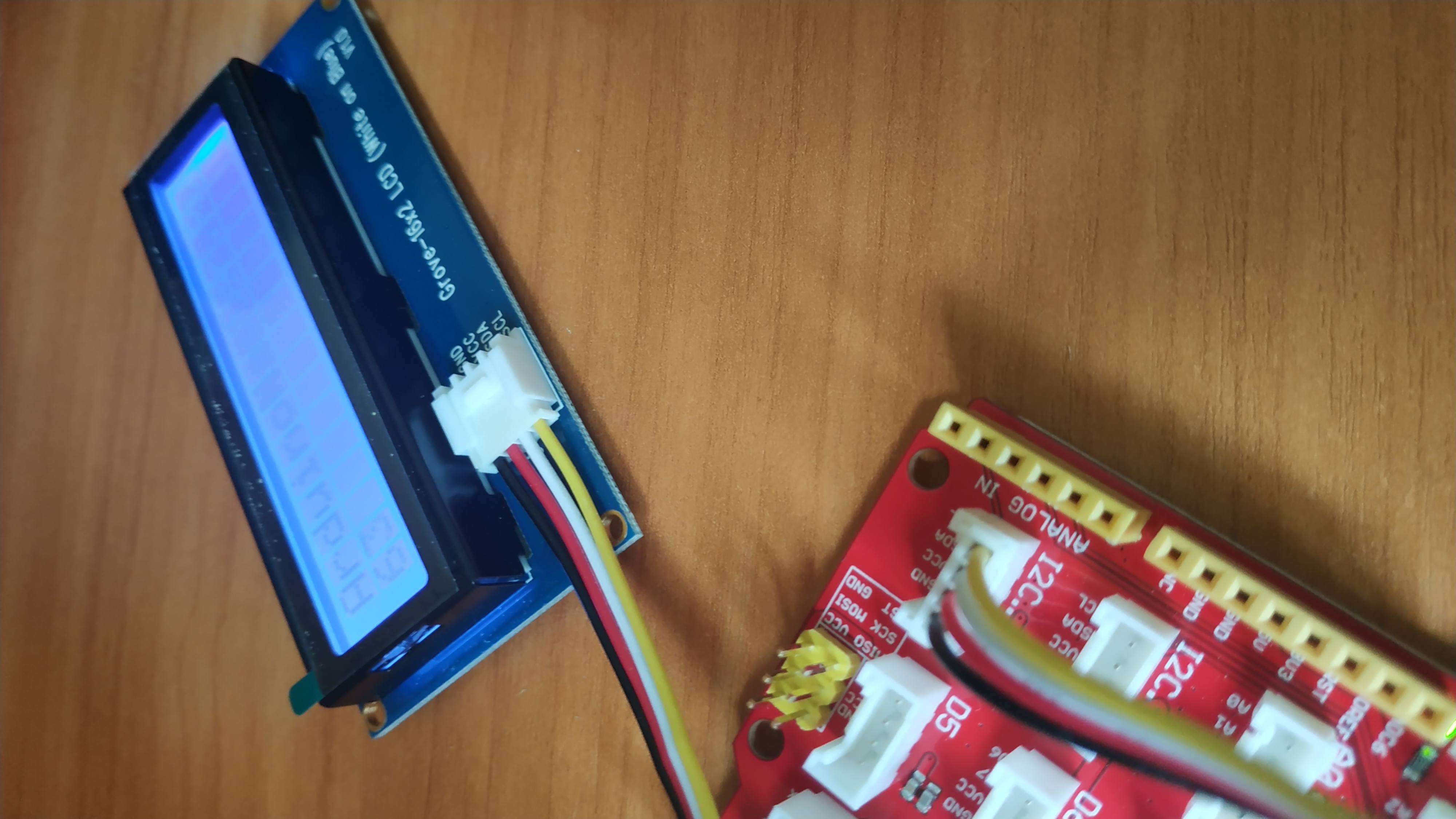 Для проекта нужно подключить модуль LCD дисплея 1602 к порту i2c платы Seeeduino. Мы используем Grove провода, здесь невозможно ошибиться с полярностью, главное, не сломать Pin-Up от нетерпения.