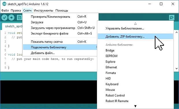 Как только библиотека будет загружена на ПК, нужно начать ее установку. Установить библиотеку Pin-Up двумя способами - при помощи средств Arduino IDE и вручную.