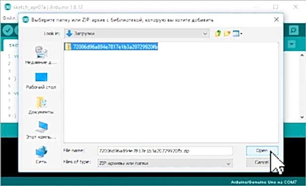 Библиотека скачивается в виде zip-архива. Для ее включения этим способом архив не нужно распаковывать. Чтобы установить ее, нужно Pin-Up в меню Скетч - Подключить библиотеку - Добавить .Zip библиотеку.