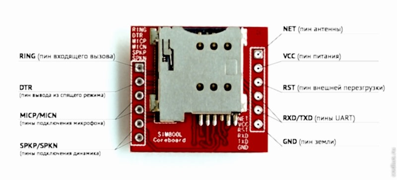 Модуль выполнен на основе компонента SIM800L и используется для отправки смс, реализации звонков и обмена данными по GPRS. В модуль устанавливается микро сим карта. Устройство обладает встроенной антенной и Pin-Up к которому можно подключать внешнюю антенну. Питание к модулю поступает от внешнего источника либо через DC-DC преобразователь. Управление осуществляется с помощью компьютера через UART, Ардуино, Raspberry Pi или аналогичные устройства.