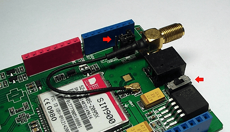 Pin-Up подключением к Ардуино нужно установить сим-карту на GSM-GPRS шилд. Также нужно установить джамперы TX и RX, как показано на рисунке.