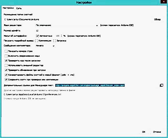 Для начала работы с NodeMcu Pin-Up подключить плату к компьютеру. Первым шагом будет установка драйвера CP2102 и открытие Arduino IDE. Затем нужно найти в «Файл» - «Настройки» и в окно «дополнительные ссылки для менеджера плат» вставить ссылкуhttp:/esp8266.com/versions3.0json.