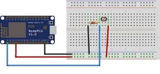 Сама плата работает от напряжения 3.3 В, Pin-Up для подключения светодиода нужно использовать резистор. В данном примере для красного светодиода берется резистор номиналом 65 Ом.
