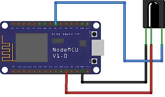 Плату NodeMCU можно использовать и для управления по ИК каналу. Для управления нужен пульт дистанционного управления с ИК приемником и сама платформа. Инфракрасный Pin-Up подключается по схеме, представленной ниже:
