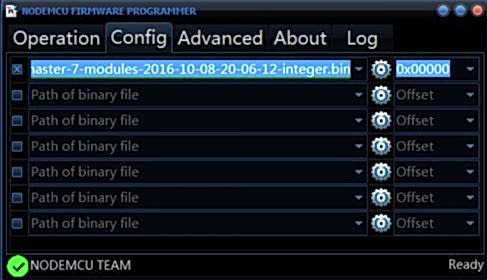 Остальное оставить без изменений, перейти на Operations и нажать Flash. Как только окончится прошивка, нужно снова перейти на Config и в первой строке указать путь esp_init_data_default.bin. Также дополнительно указывается адрес, куда нужно переместить этот файл. Для модуля NodeMCU следует выбрать адрес Pin-Up После этого нужно снова вернуться на Operations и нажать Flash.