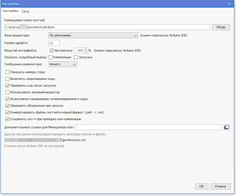 Для начала необходимо установить на свой ПК Pin-Up версию среды Arduino IDE. Сделать это можно на официальном интернет-сайте. На момент написания статьи крайняя версия IDE - это 1.8.5. После загрузки и инсталляции среды разработки, необходимо запустить ее и перейди в раздел Файл > Настройки. Там есть поле для дополнительных ссылок менеджера плат. В него необходимо вписатьhttp:/esp8266.com/stablejsonи клацнуть на кнопочку ОК.