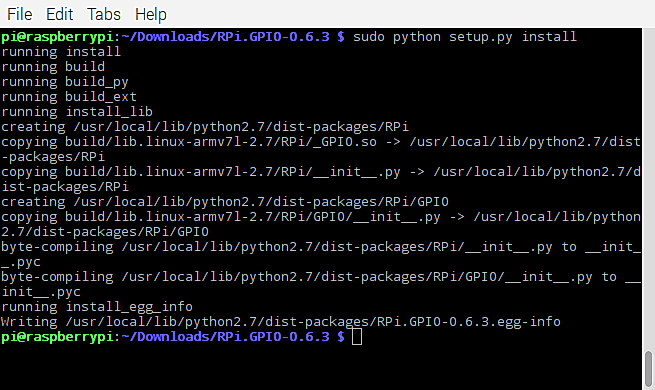 cd /home/pi/DownloadsGPIO-0.6.3