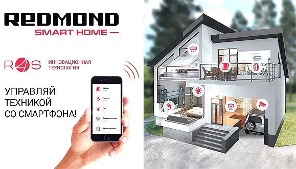 Компания Redmond также выпустила линейку продукции для организации умного дома с названием Smart Home. Все оборудование управляется через Bluetooth по планшету или телефону. Центральный модуль не требуется, пока владелец находится в помещении. Для удаленного управления используется модуль на базе смартфона с сим-картой Pin-Up Андроид устройство или модуль SkyCenter, который встраивается в умную розетку.