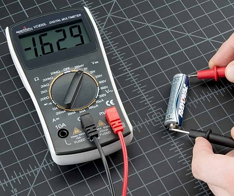 Мультиметр может измерить постоянное и переменное напряжение. Для этого рукоятка переводится в соответствующее положение. Затем выбирается диапазон измерений. Лучше его знать заранее. Это проще, чем с силой тока - например, в розетке напряжение равно 220 В + Pin-Up а на аккумуляторах и батарейках значение написано. Исходя из этих значений, выбирается ближайший предел. Если предел выбран слишком большой, можно постепенно уменьшать его значение. Об этом можно узнать по цифре 1 на дисплее.